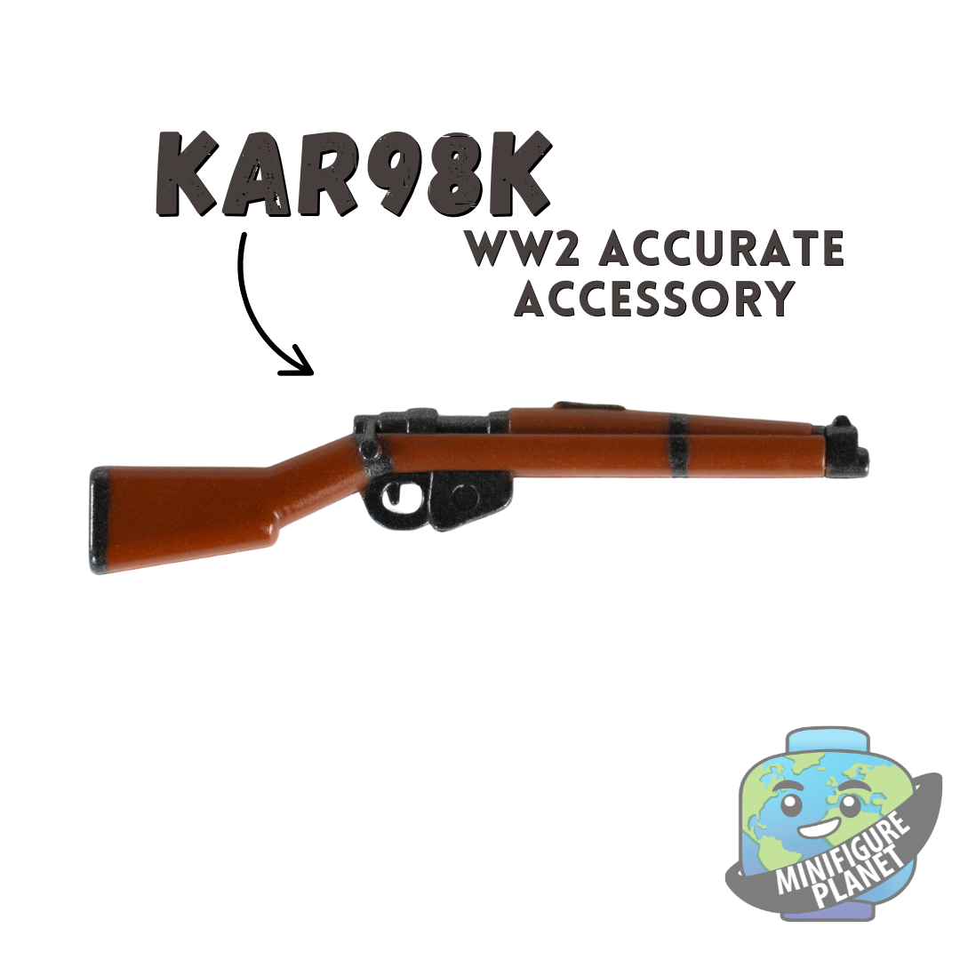 This WW2 German Soldier minifigure is inspired by the troops who fought across Europe during the Second World War. He comes equipped with a classic Kar98k rifle and a helmet, making him an unmistakable addition to any battlefield scene.